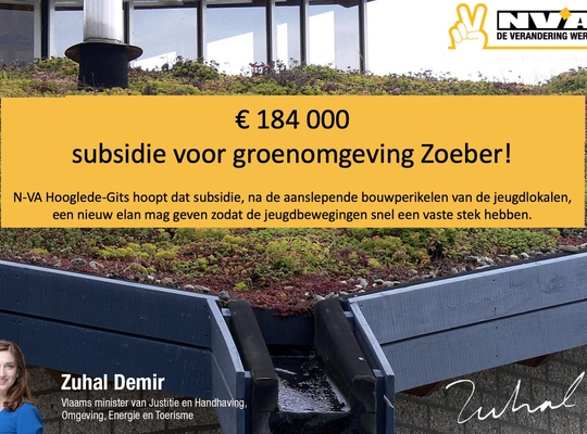 Vlaams minister van Justitie en Handhaving, Omgeving, Energie en Toerisme Zuhal Demir trekt via het klimaatfonds € 184.032,28 uit voor Zoeber wordt groener!. Zo wapent de minister Hooglede-Gits beter tegen de klimaatverandering.